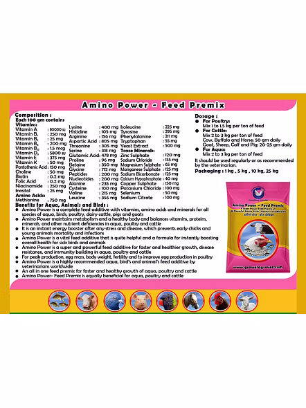 Aquaculture : Amino Power- Feed Premix: A Super Power Feed Premix With 46 Amino Acids, Vitamins And Minerals