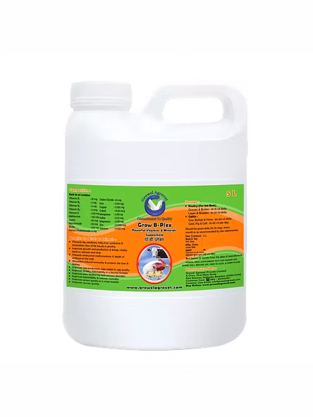 Vitamin B (Grow B Plex) protects pet birds from disease, and It helps to improve immunity, feather quality, weight gain, egg production, and hatchability.