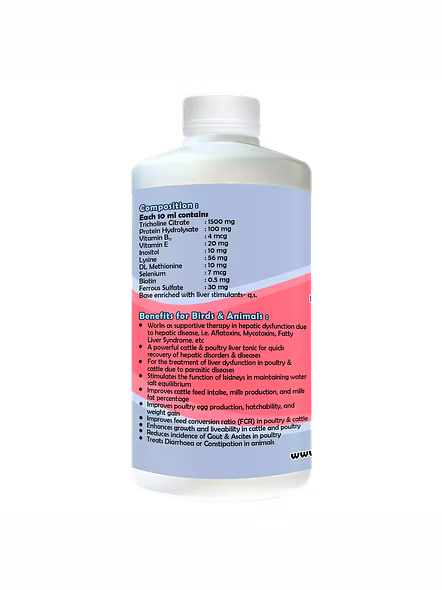 • Liver Tonic (Growlive Forte) supports healthy liver function, repair, rejuvenate & regenerates liver cells in the hen.