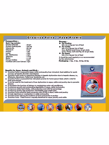 Poultry : Growlive Forte – Feed Premix: Liver Stimulants Feed Premix